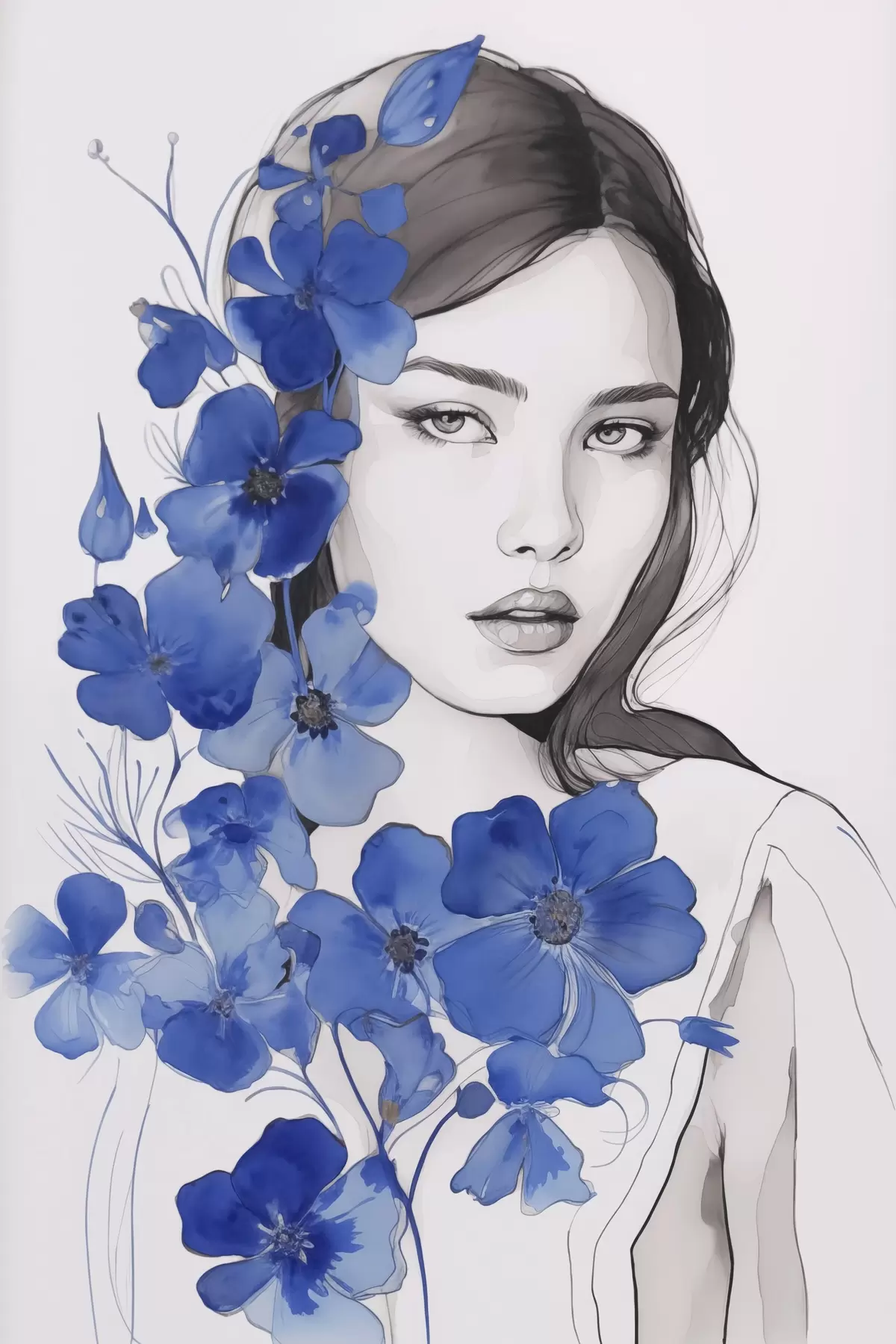 Plakatas Mergaitė ir mėlynos gėlės Ne f45757