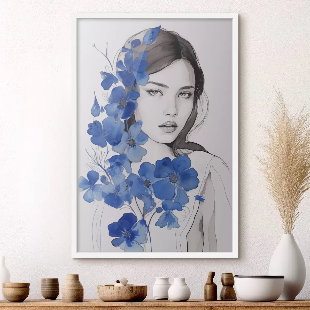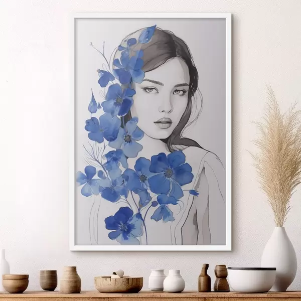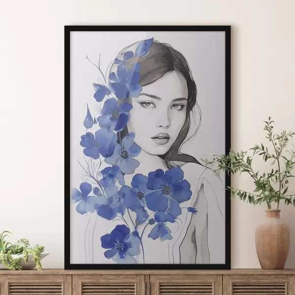 Plakatas Mergaitė ir mėlynos gėlės f45757