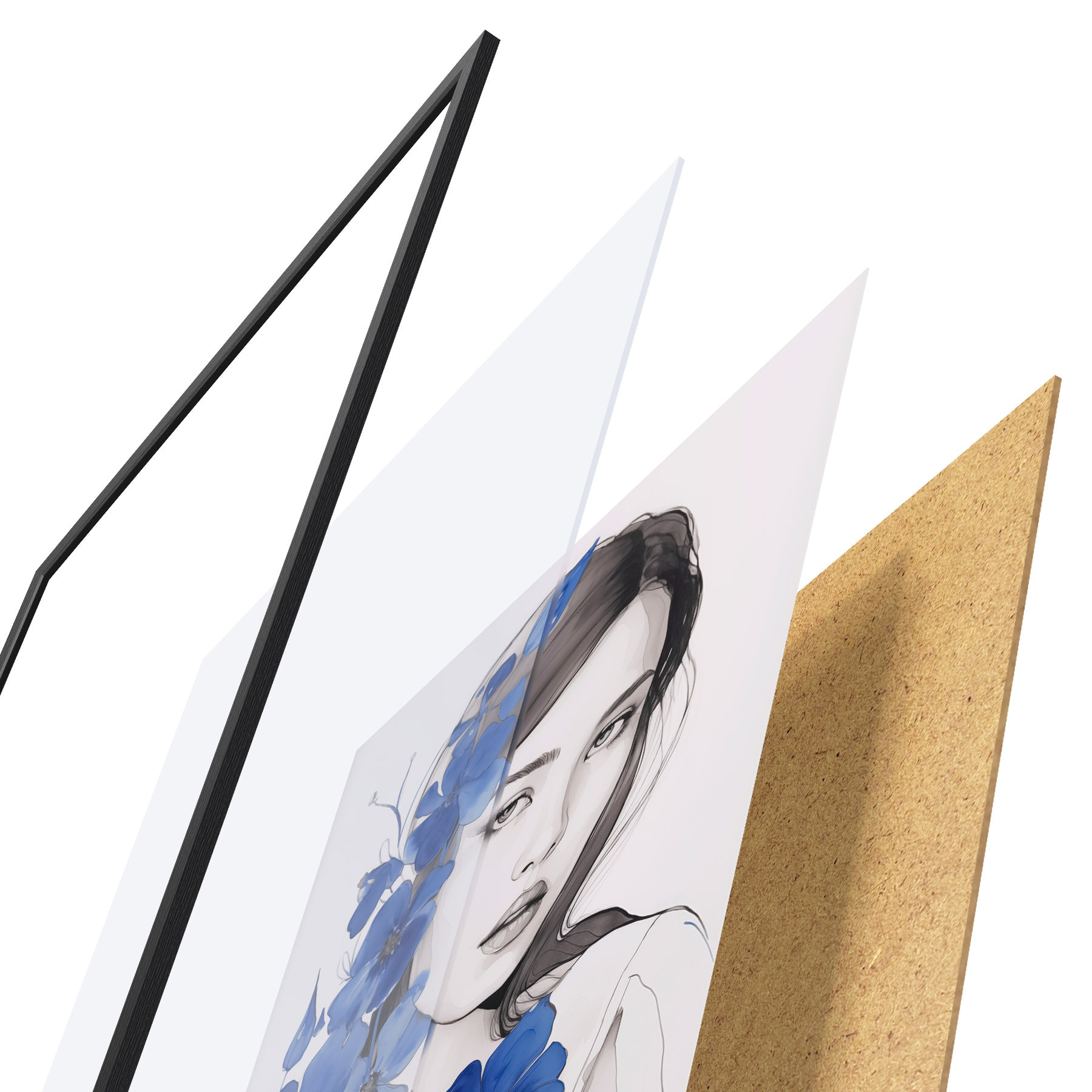 Plakatą sudaro rėmas, pleksiklas, atspausdintas vaizdas ir medžio drožlių plokštės pagrindas. Plakatą galima iš karto pakabinti ant sienos dėl kitoje pusėje esančių laikiklių.