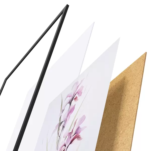 Plakatą sudaro rėmas, pleksiklas, atspausdintas vaizdas ir medžio drožlių plokštės pagrindas. Plakatą galima iš karto pakabinti ant sienos dėl kitoje pusėje esančių laikiklių.