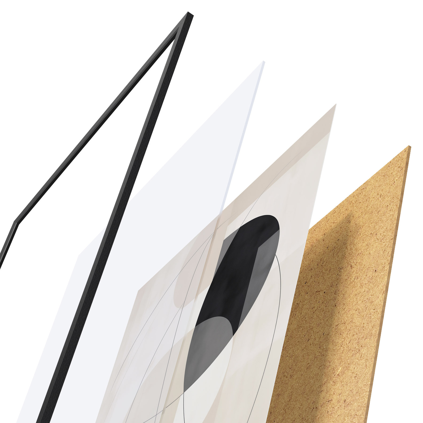 Plakatą sudaro rėmas, pleksiklas, atspausdintas vaizdas ir medžio drožlių plokštės pagrindas. Plakatą galima iš karto pakabinti ant sienos dėl kitoje pusėje esančių laikiklių.