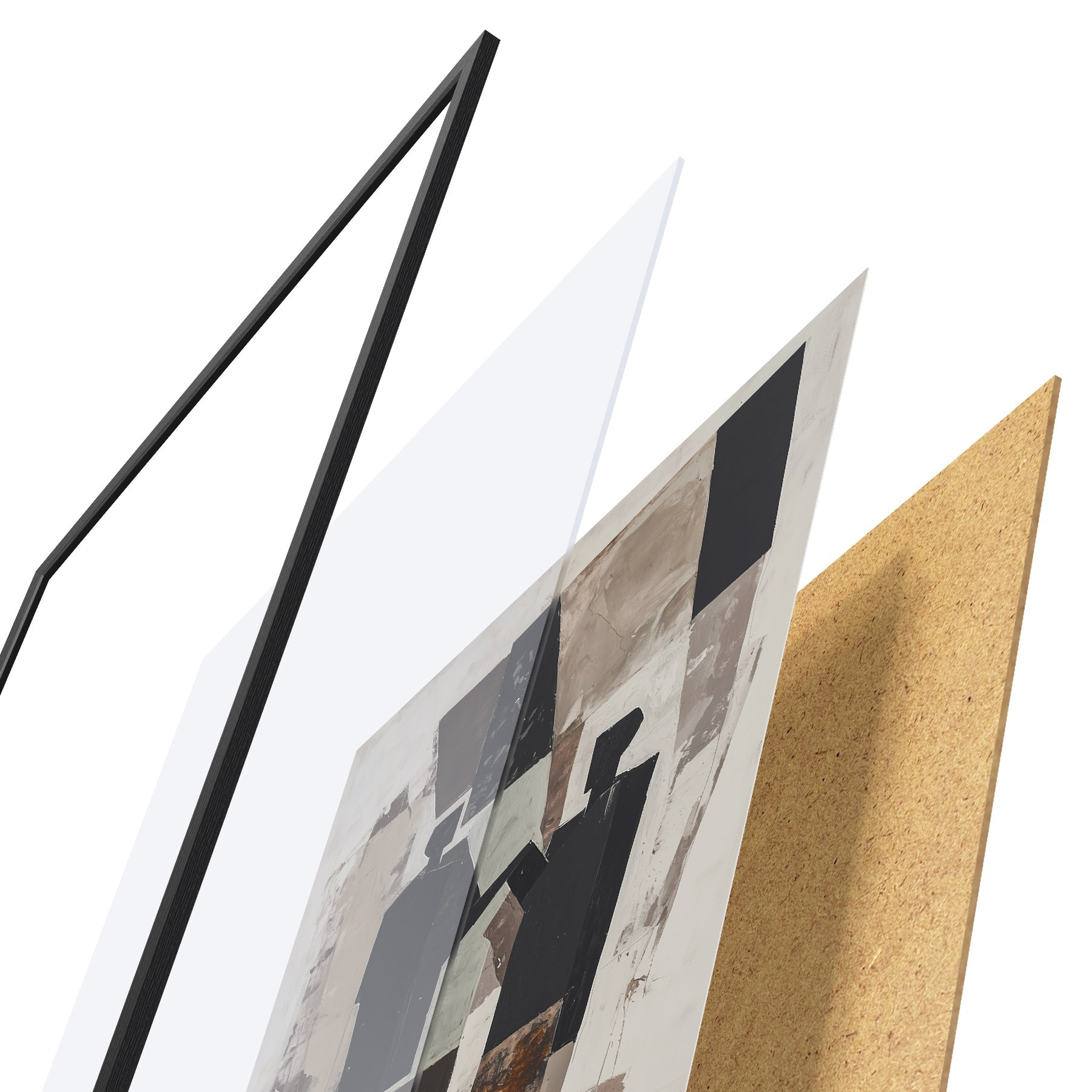 Plakatą sudaro rėmas, pleksiklas, atspausdintas vaizdas ir medžio drožlių plokštės pagrindas. Plakatą galima iš karto pakabinti ant sienos dėl kitoje pusėje esančių laikiklių.