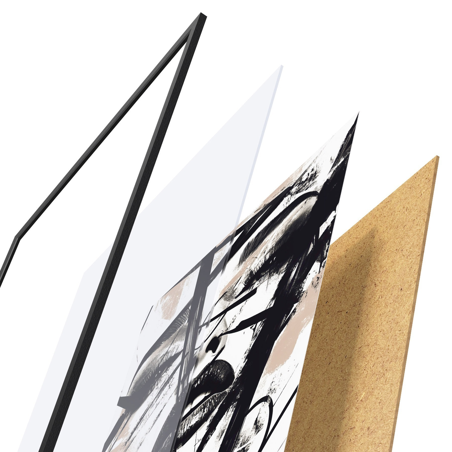 Plakatą sudaro rėmas, pleksiklas, atspausdintas vaizdas ir medžio drožlių plokštės pagrindas. Plakatą galima iš karto pakabinti ant sienos dėl kitoje pusėje esančių laikiklių.