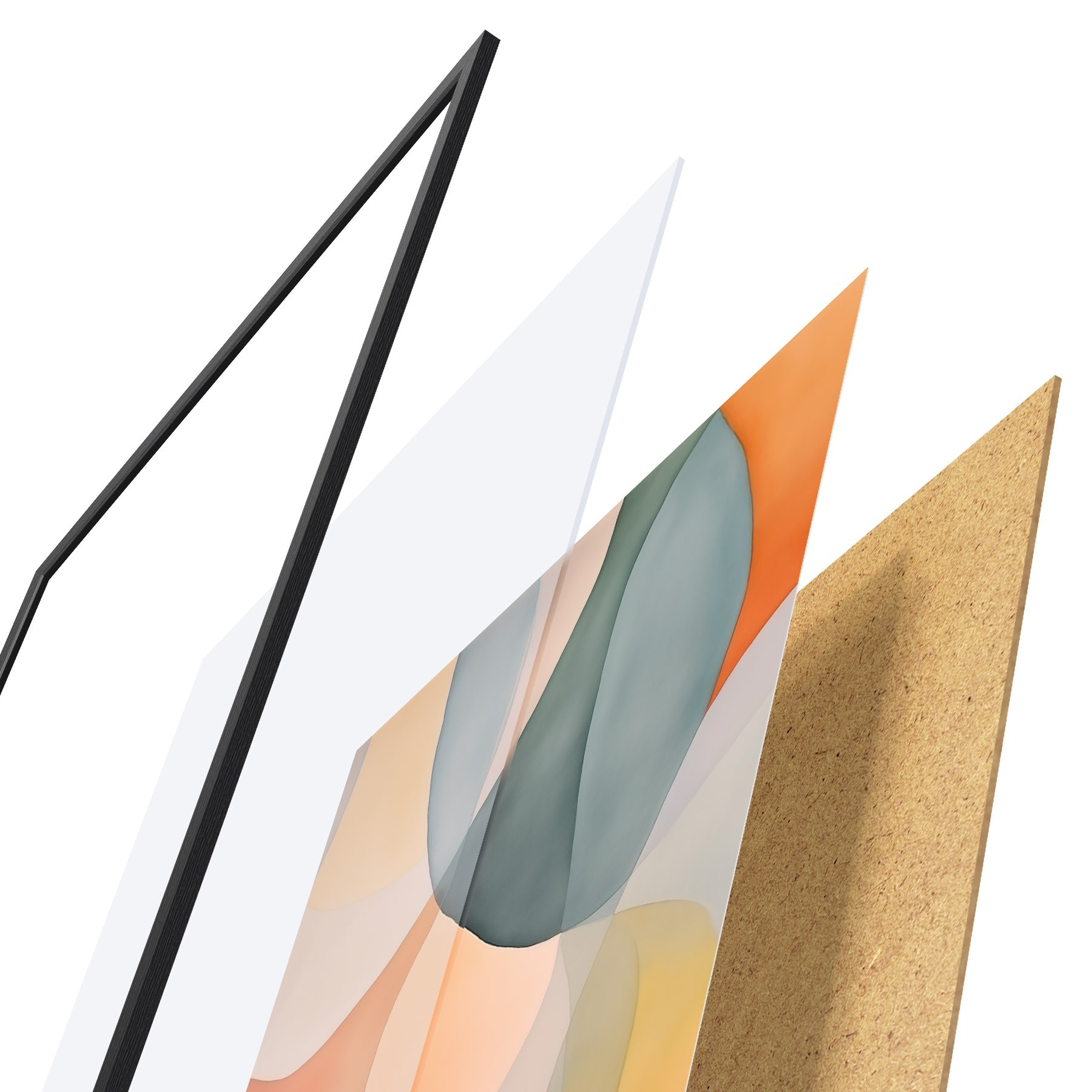 Plakatą sudaro rėmas, pleksiklas, atspausdintas vaizdas ir medžio drožlių plokštės pagrindas. Plakatą galima iš karto pakabinti ant sienos dėl kitoje pusėje esančių laikiklių.