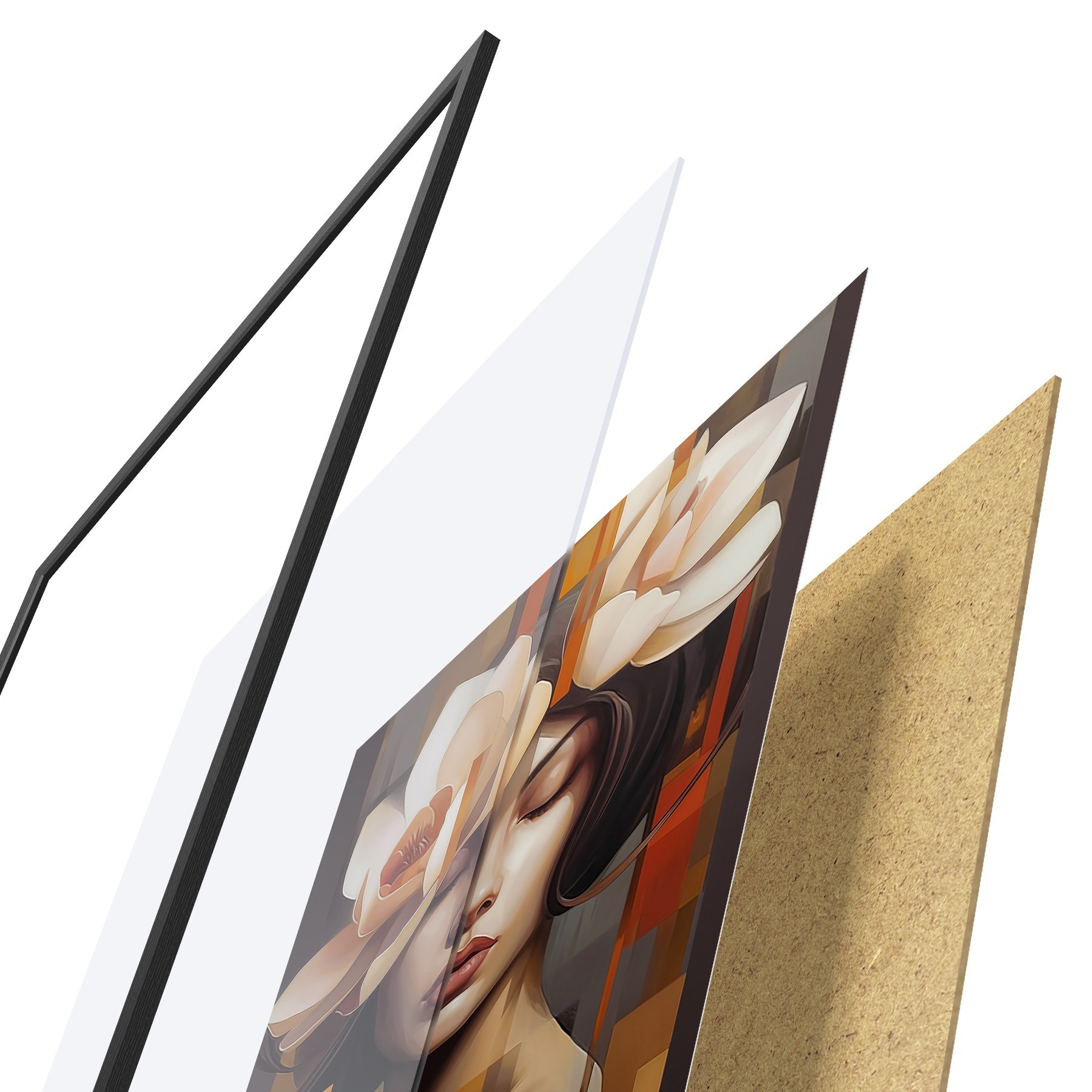 Plakatą sudaro rėmas, pleksiklas, atspausdintas vaizdas ir medžio drožlių plokštės pagrindas. Plakatą galima iš karto pakabinti ant sienos dėl kitoje pusėje esančių laikiklių.