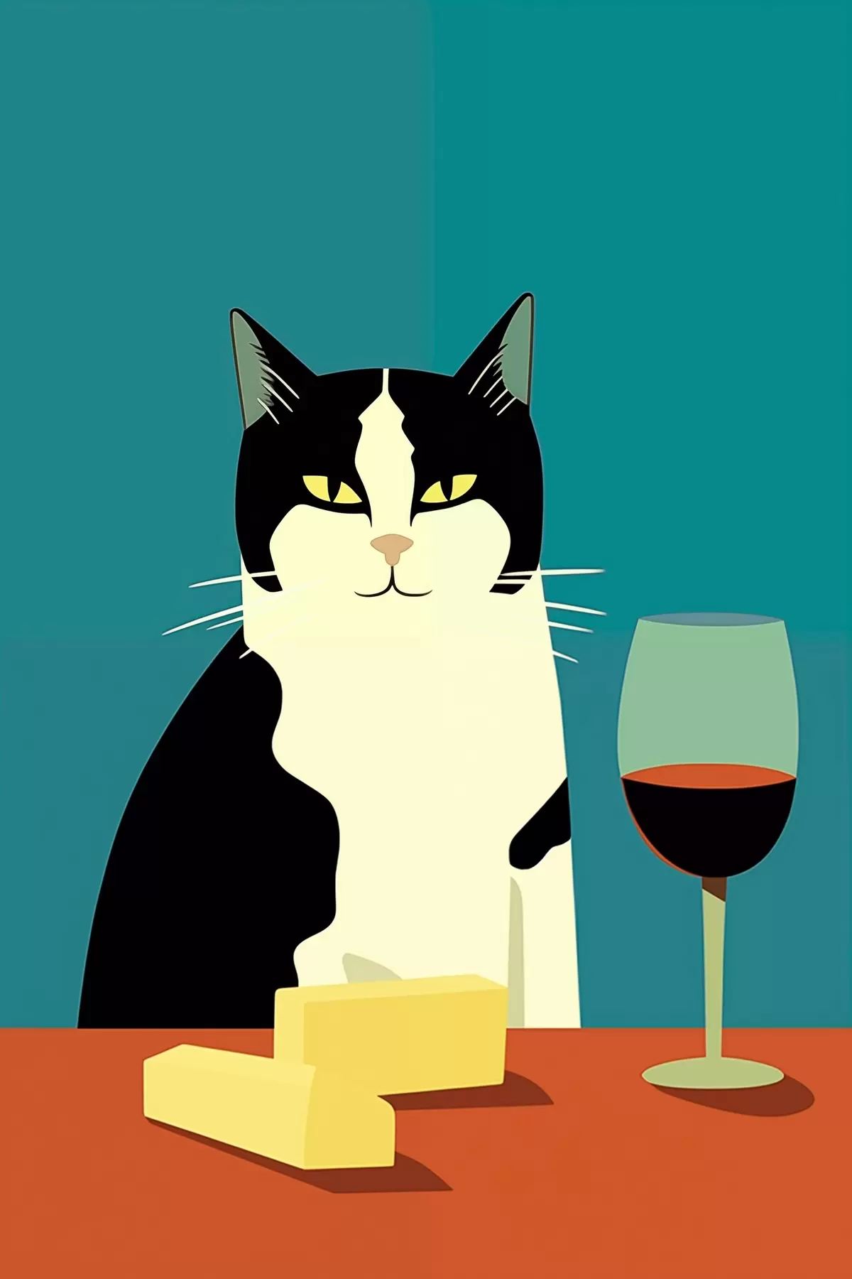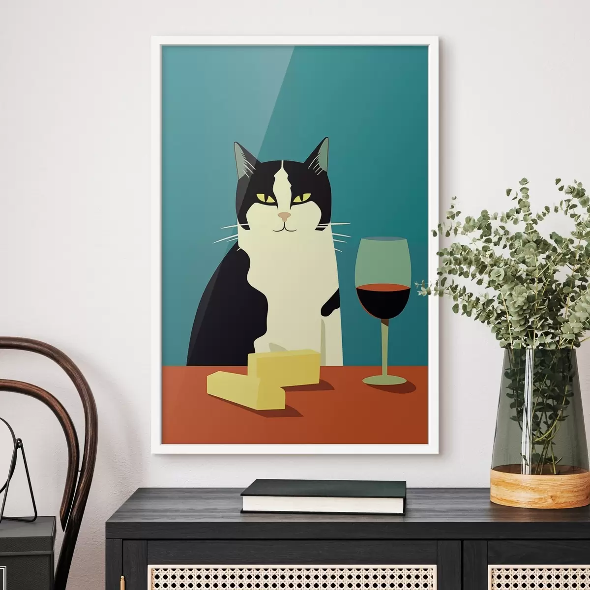 Plakatas Katė su vynu ir sūriu Ne f45801