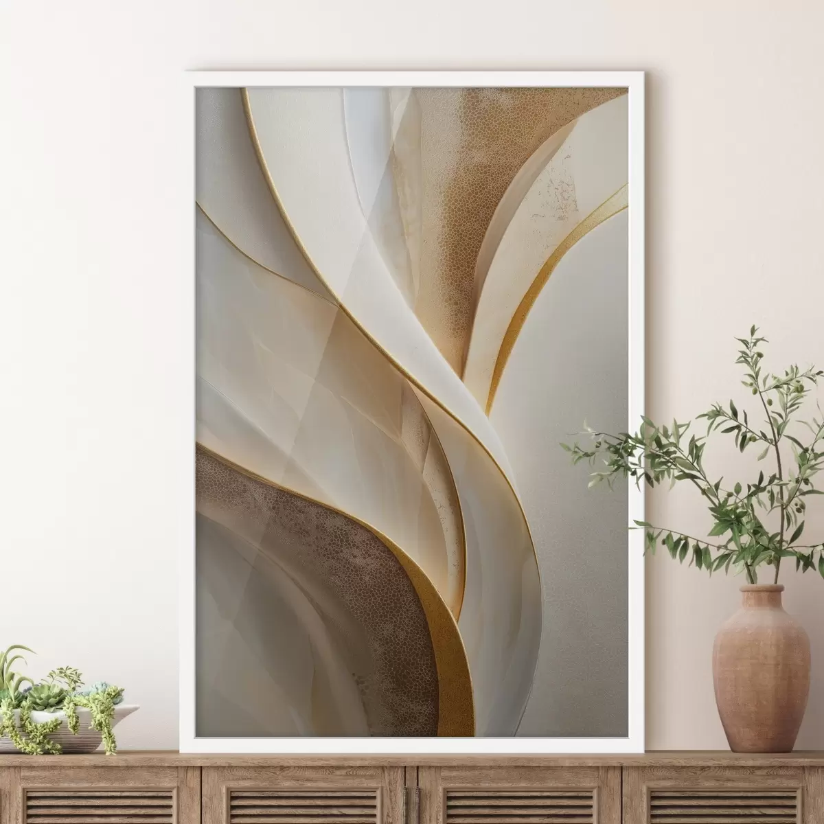 Plakatas Abstrakčios kreivės su geltonai oranžiniais ir smėlio atspalviais f45807