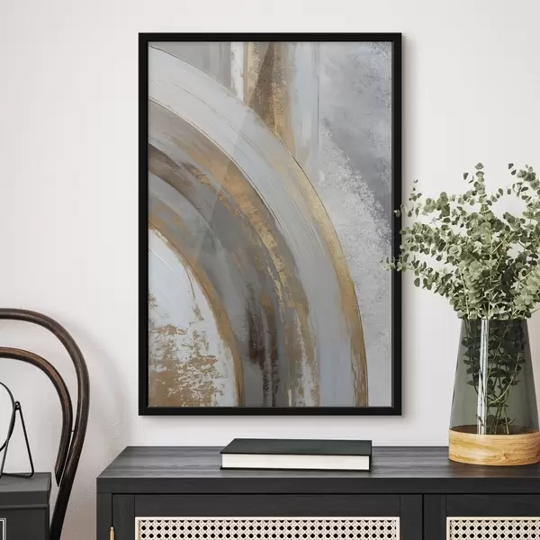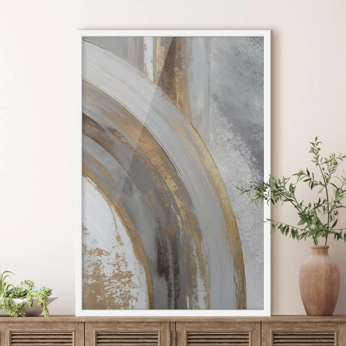 Plakatas Abstrakčios pilkos ir geltonos pusapvalės f45809