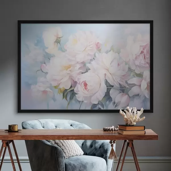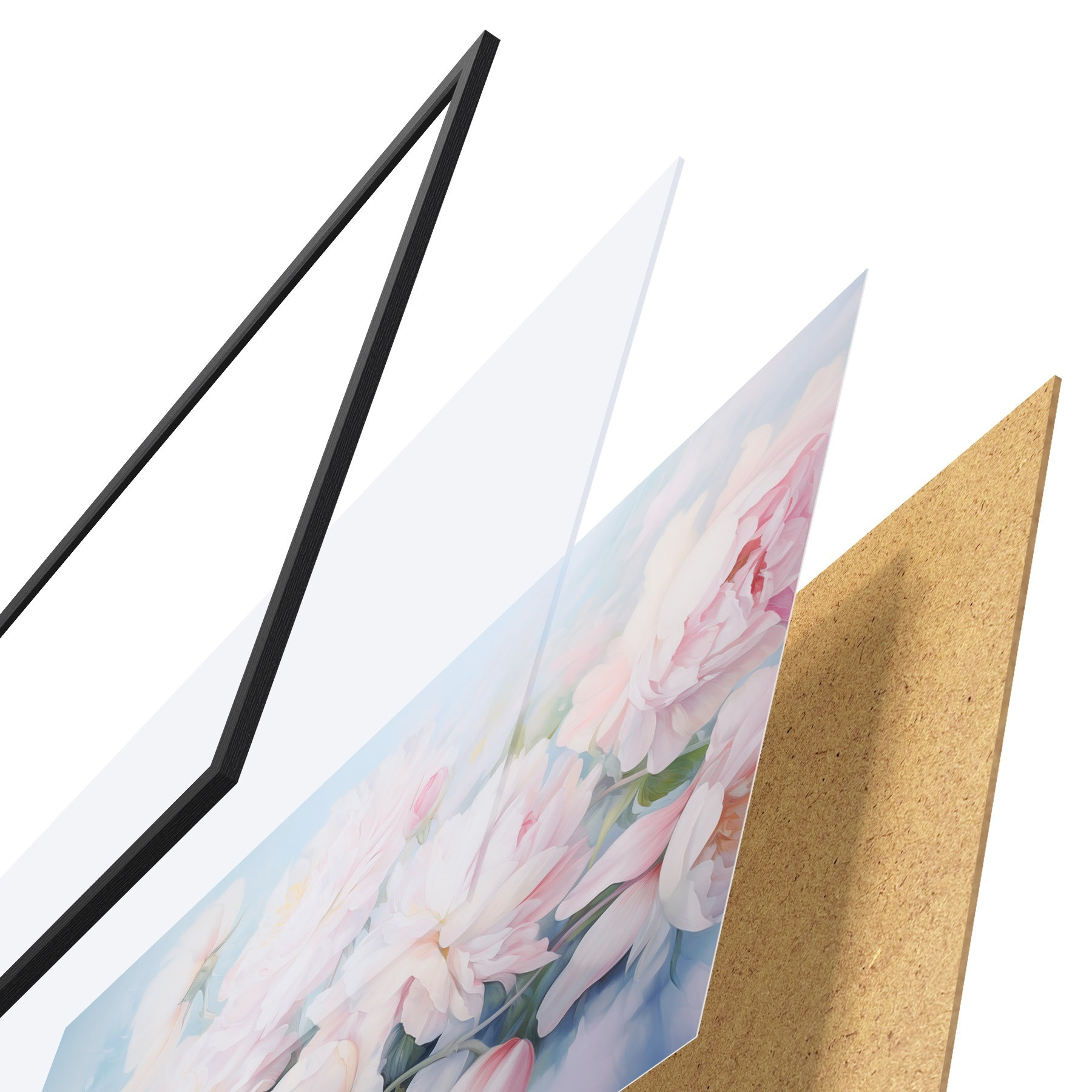 Plakatas Subtilūs rožiniai bijūnai ant žydro dangaus fono f45813