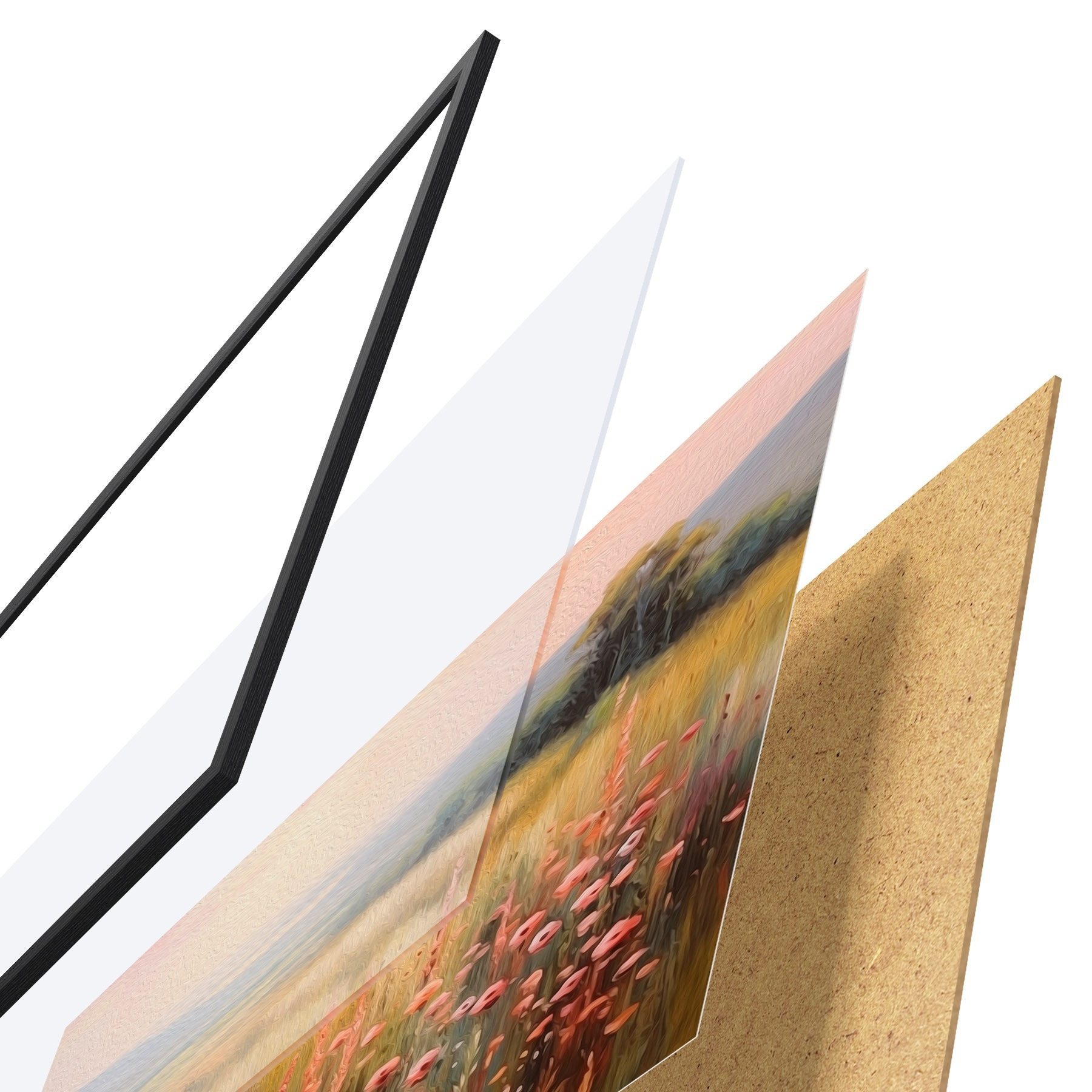 Plakatą sudaro rėmas, pleksiklas, atspausdintas vaizdas ir medžio drožlių plokštės pagrindas. Plakatą galima iš karto pakabinti ant sienos dėl kitoje pusėje esančių laikiklių.