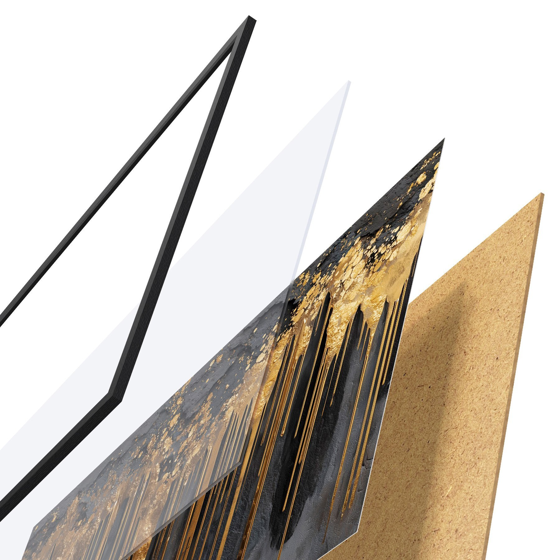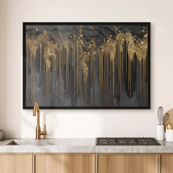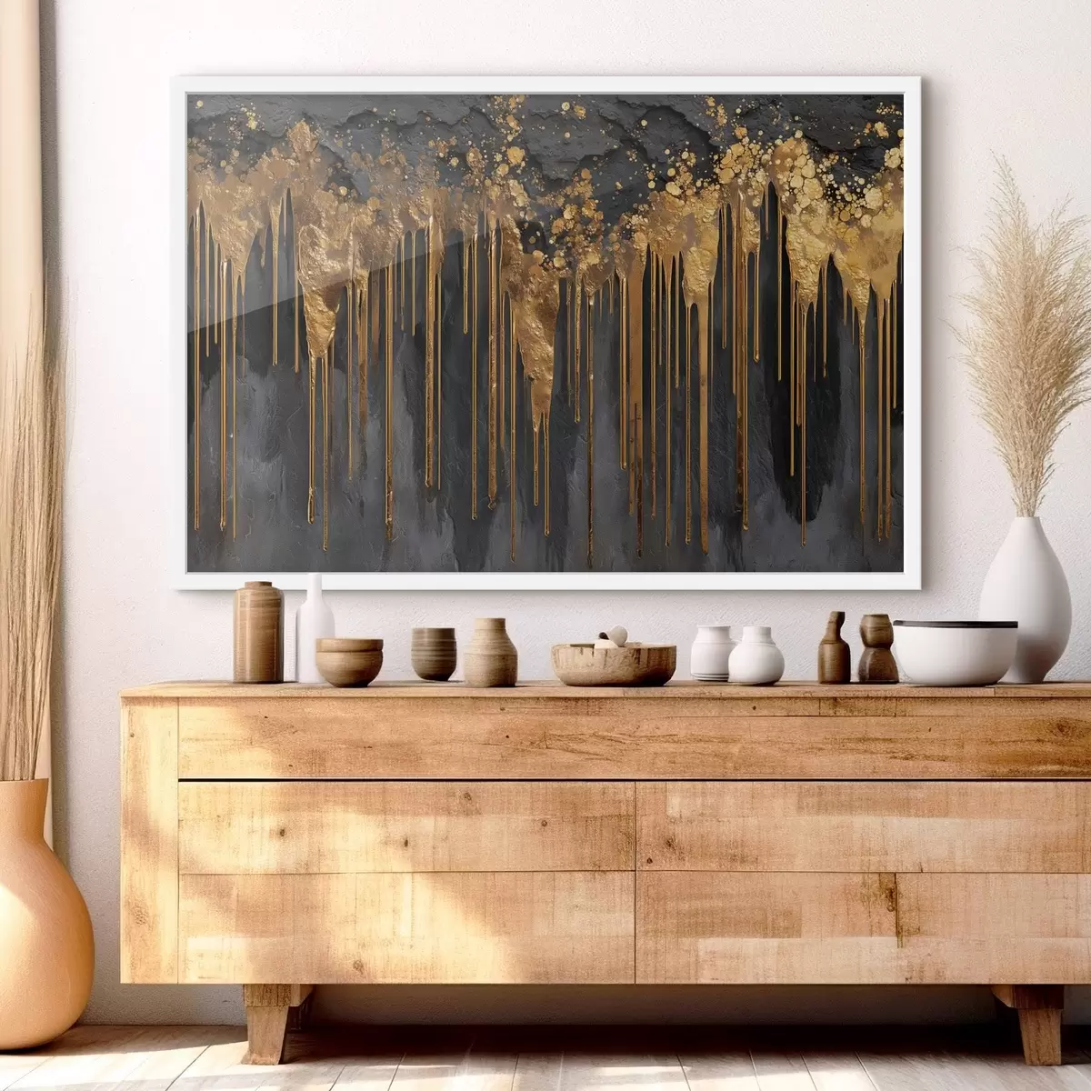 Plakatas Abstrakčios auksinės srovelės ant tamsaus fono f45823