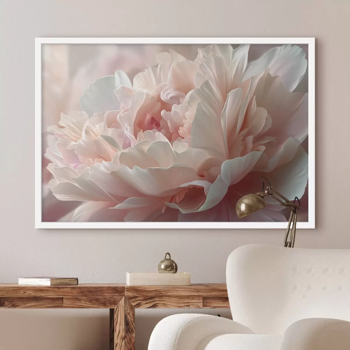Plakatas Žydinti bijūnė rausvos ir smėlio spalvos atspalviais f45825