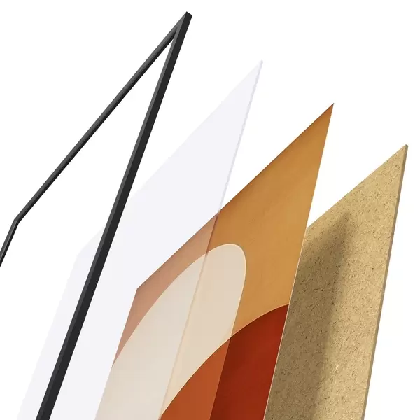 Plakatą sudaro rėmas, pleksiklas, atspausdintas vaizdas ir medžio drožlių plokštės pagrindas. Plakatą galima iš karto pakabinti ant sienos dėl kitoje pusėje esančių laikiklių.