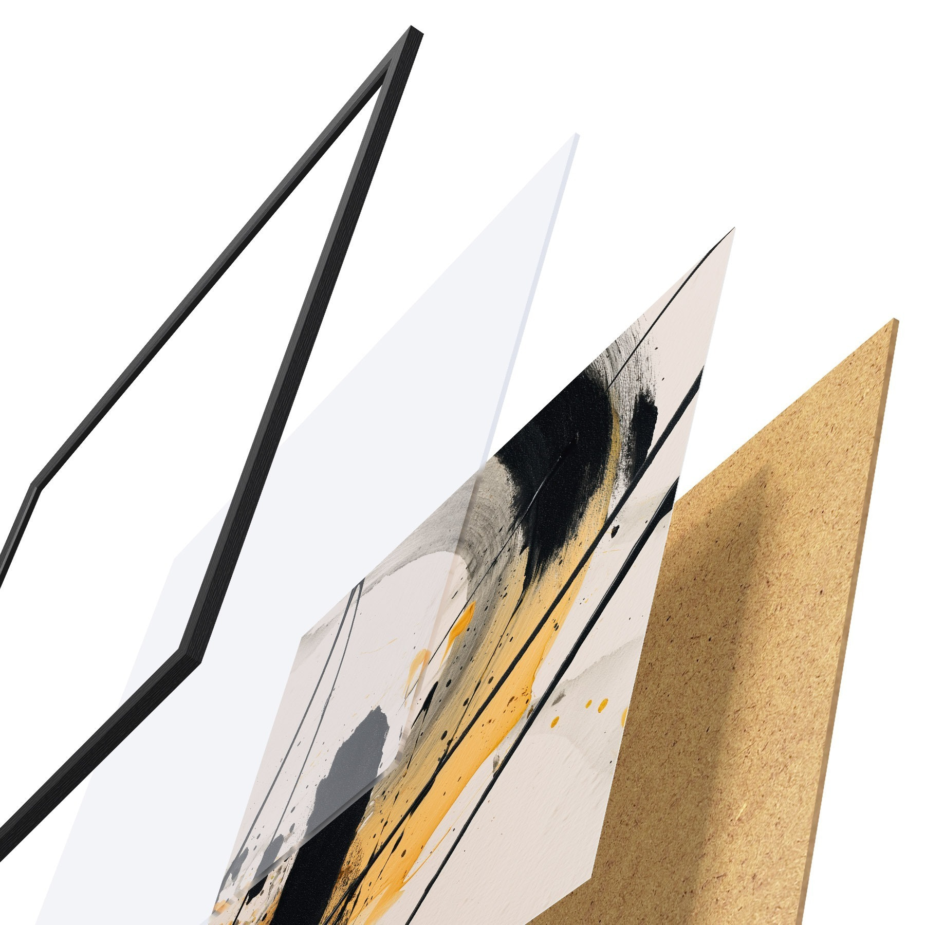 Plakatą sudaro rėmas, pleksiklas, atspausdintas vaizdas ir medžio drožlių plokštės pagrindas. Plakatą galima iš karto pakabinti ant sienos dėl kitoje pusėje esančių laikiklių.
