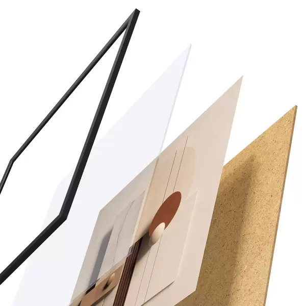 Plakatą sudaro rėmas, pleksiklas, atspausdintas vaizdas ir medžio drožlių plokštės pagrindas. Plakatą galima iš karto pakabinti ant sienos dėl kitoje pusėje esančių laikiklių.