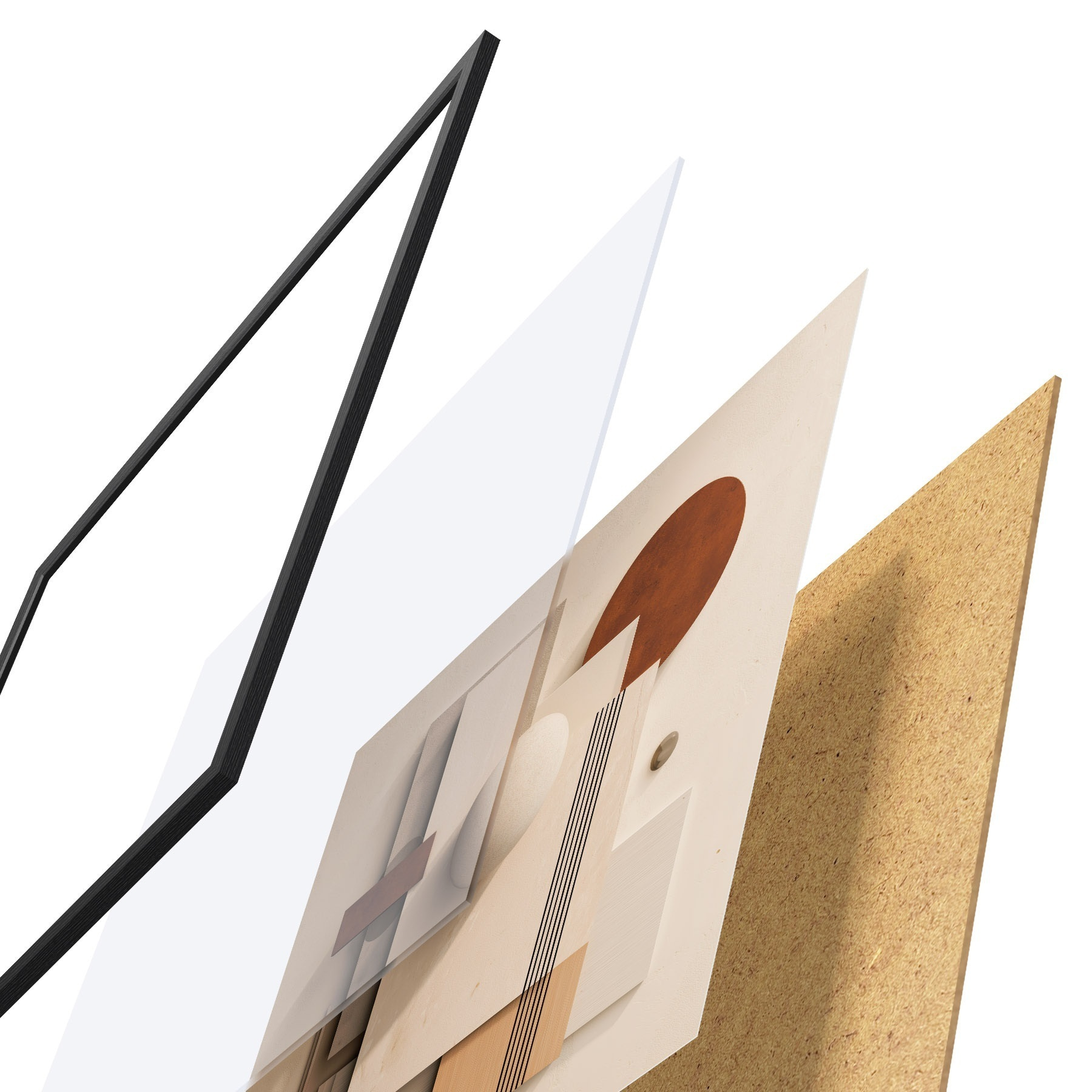 Plakatą sudaro rėmas, pleksiklas, atspausdintas vaizdas ir medžio drožlių plokštės pagrindas. Plakatą galima iš karto pakabinti ant sienos dėl kitoje pusėje esančių laikiklių.