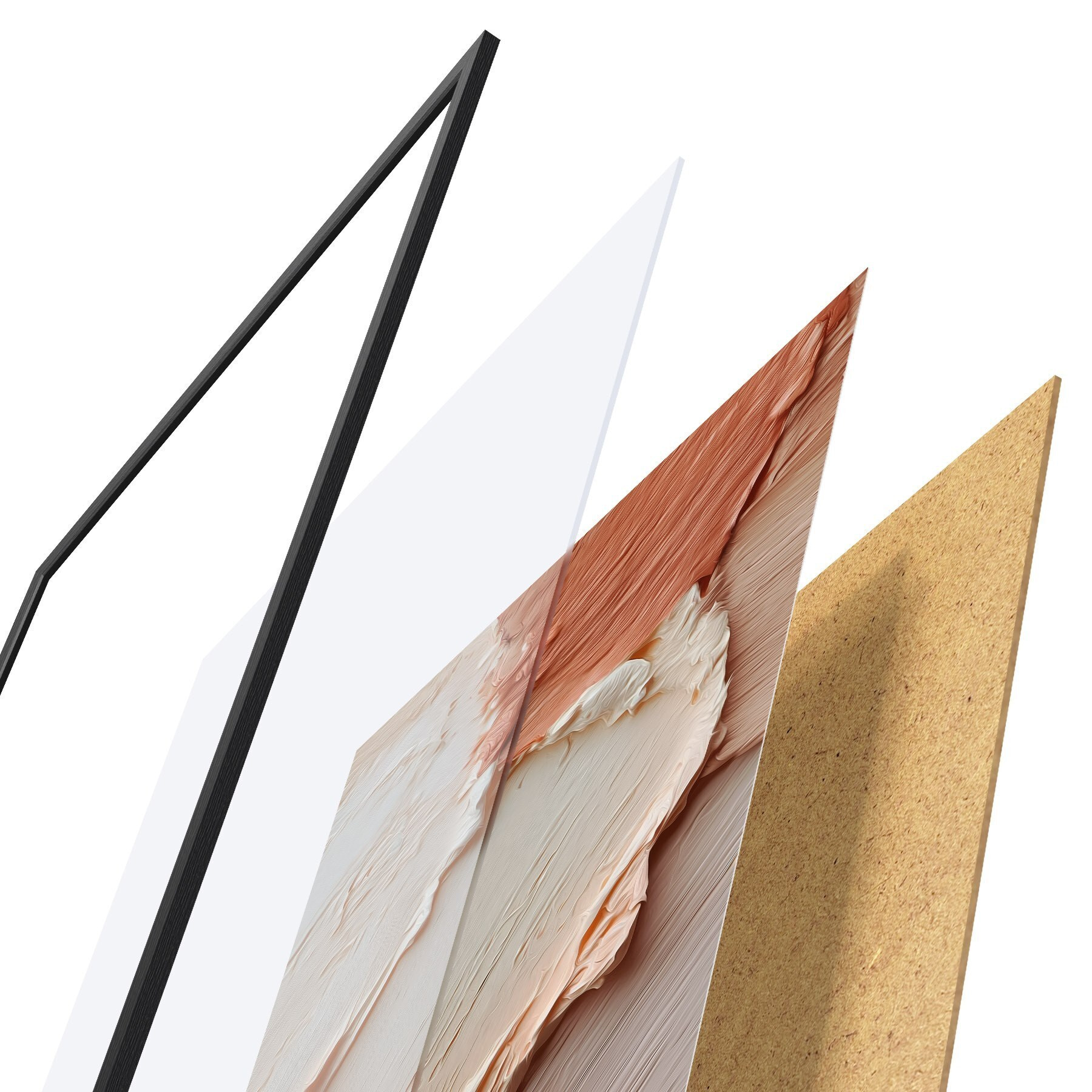 Plakatą sudaro rėmas, pleksiklas, atspausdintas vaizdas ir medžio drožlių plokštės pagrindas. Plakatą galima iš karto pakabinti ant sienos dėl kitoje pusėje esančių laikiklių.