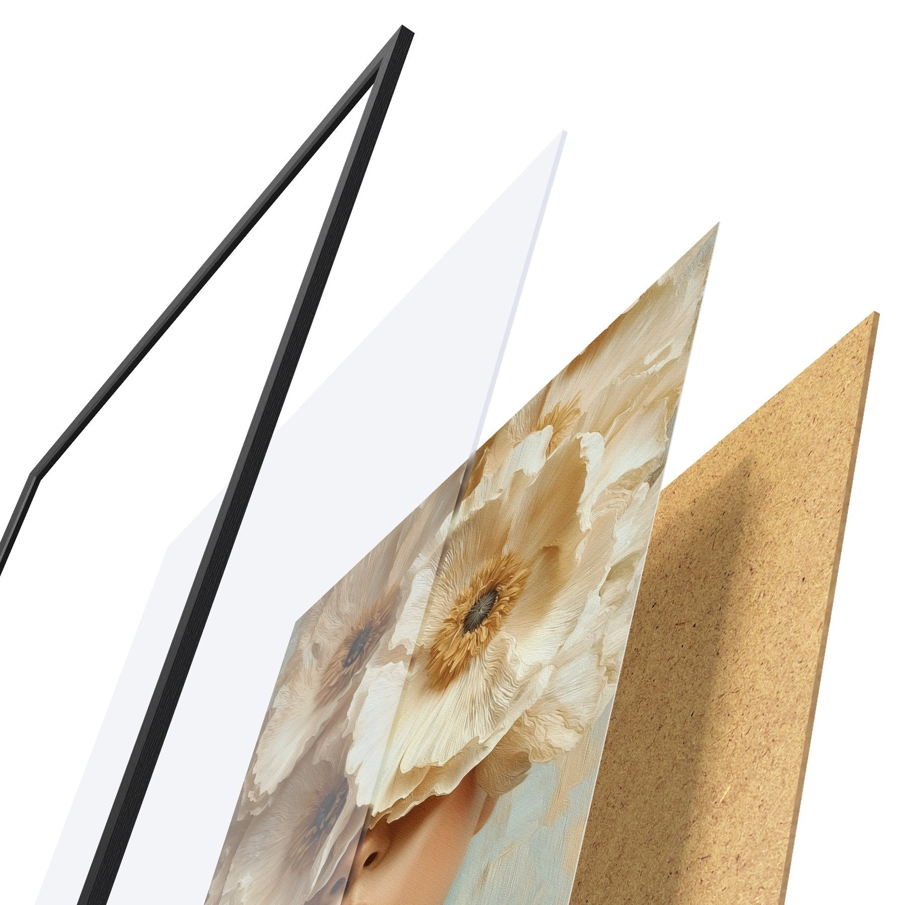 Plakatas Portretas su smėlio spalvos gėlėmis, dengiančiomis akis Ne f45870