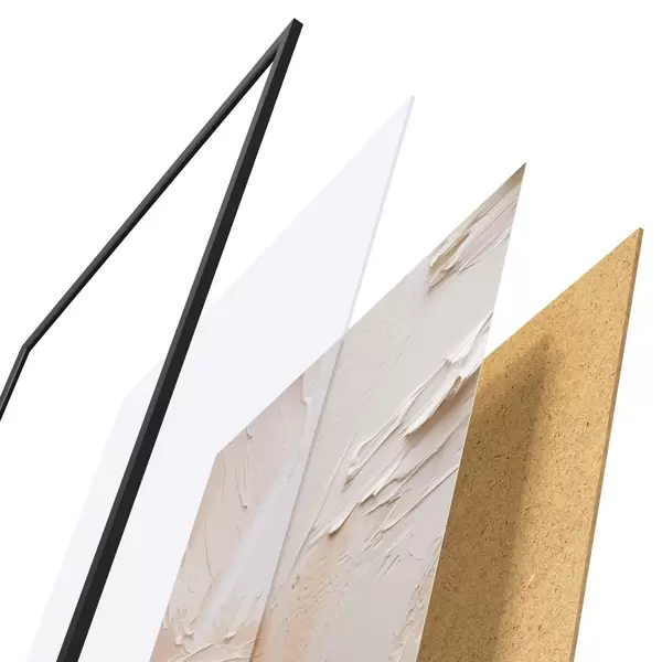 Plakatą sudaro rėmas, pleksiklas, atspausdintas vaizdas ir medžio drožlių plokštės pagrindas. Plakatą galima iš karto pakabinti ant sienos dėl kitoje pusėje esančių laikiklių.