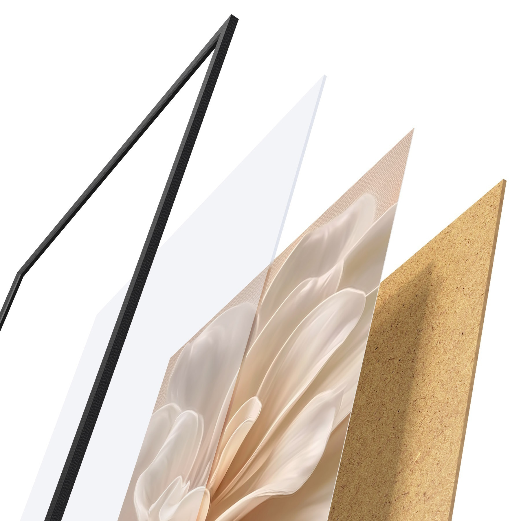 Plakatą sudaro rėmas, pleksiklas, atspausdintas vaizdas ir medžio drožlių plokštės pagrindas. Plakatą galima iš karto pakabinti ant sienos dėl kitoje pusėje esančių laikiklių.
