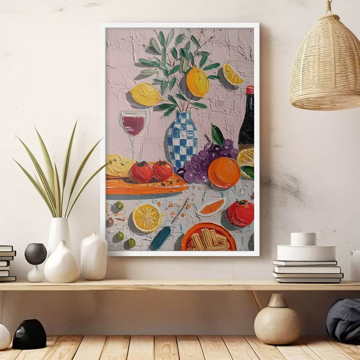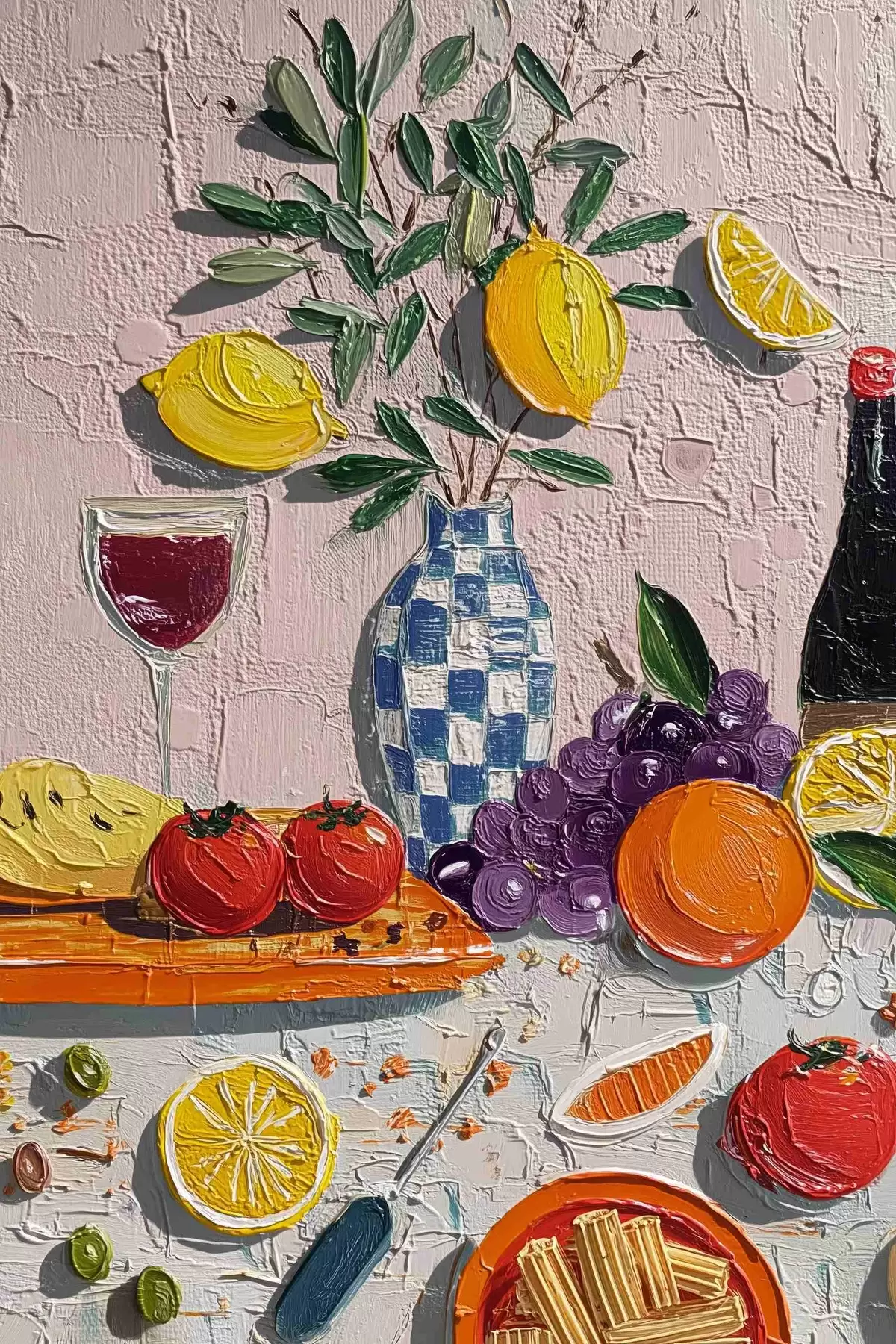 Plakatas Pastelinė natiurmortas: citrinos, vynuogės ir pomidorai, impasto Ne f45876