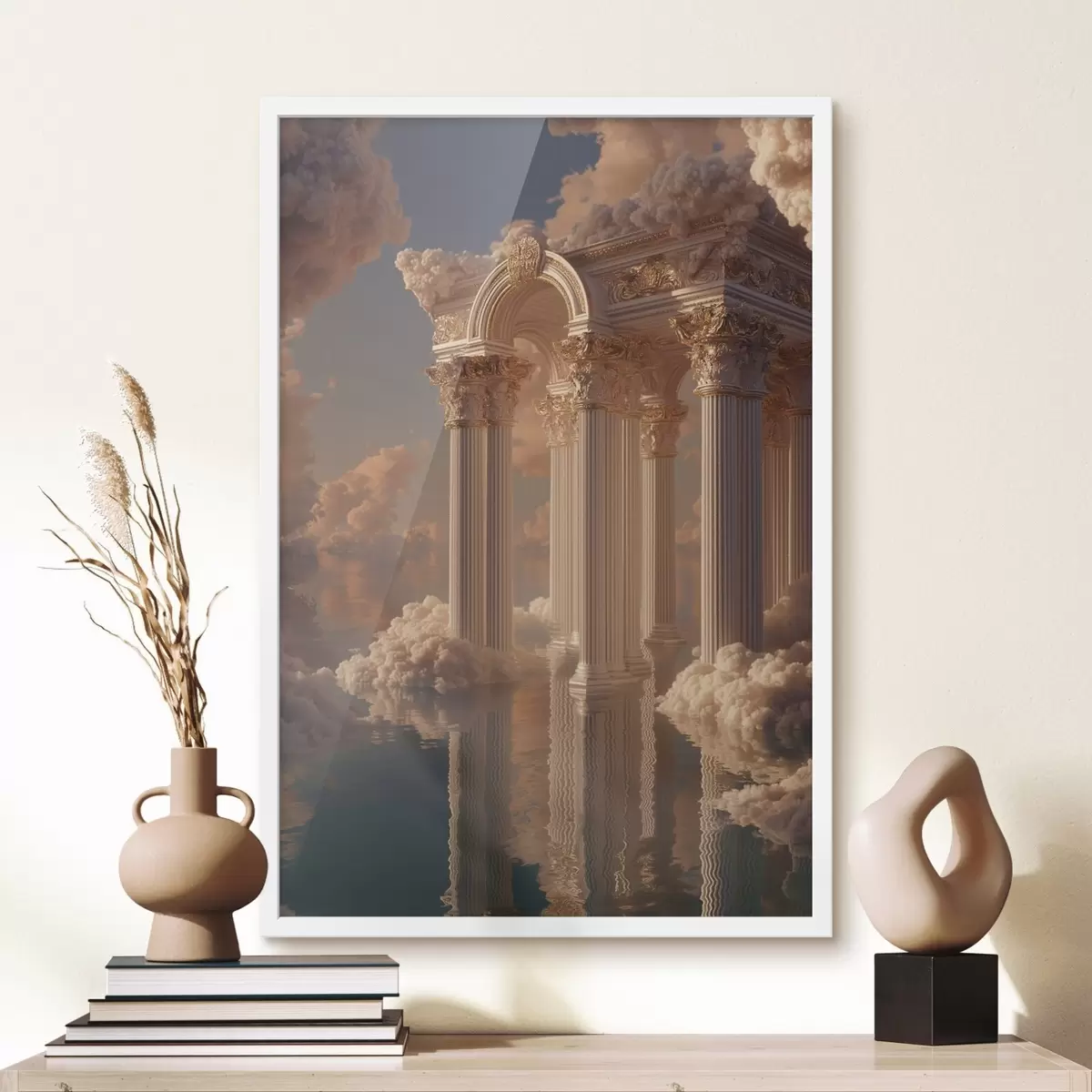 Plakatas Stulpeliai debesyse, atspindžiai vandenyje f45881