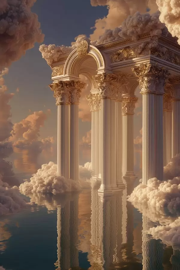 Plakatas Stulpeliai debesyse, atspindžiai vandenyje Ne f45881