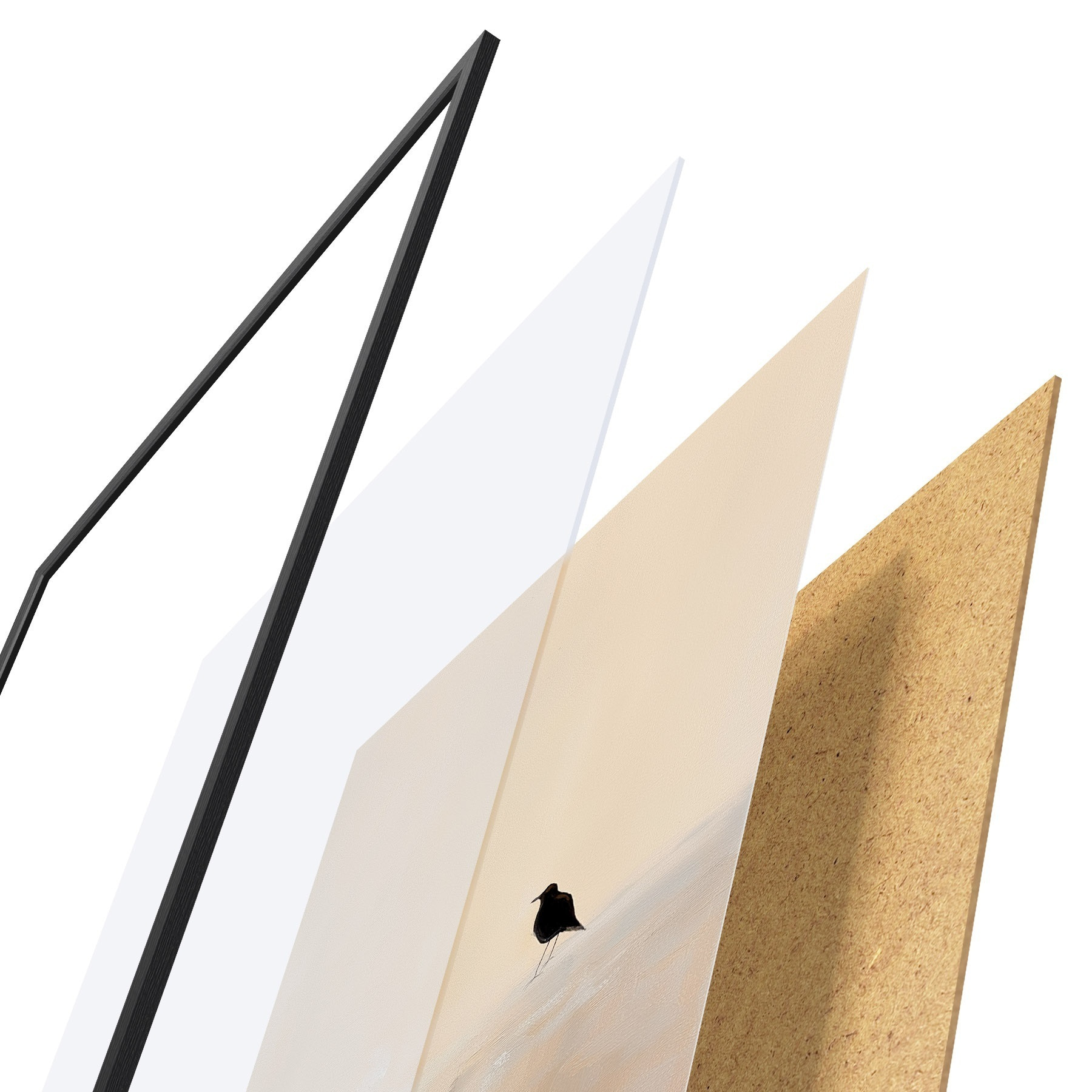 Plakatą sudaro rėmas, pleksiklas, atspausdintas vaizdas ir medžio drožlių plokštės pagrindas. Plakatą galima iš karto pakabinti ant sienos dėl kitoje pusėje esančių laikiklių.