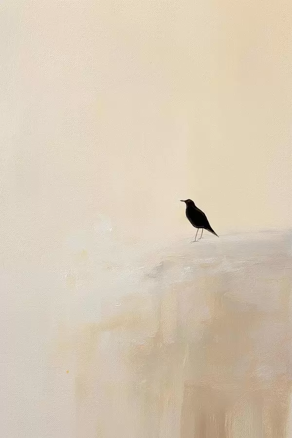 Plakatas Vienišas paukštis ant šilto smėlio spalvos fono f45882