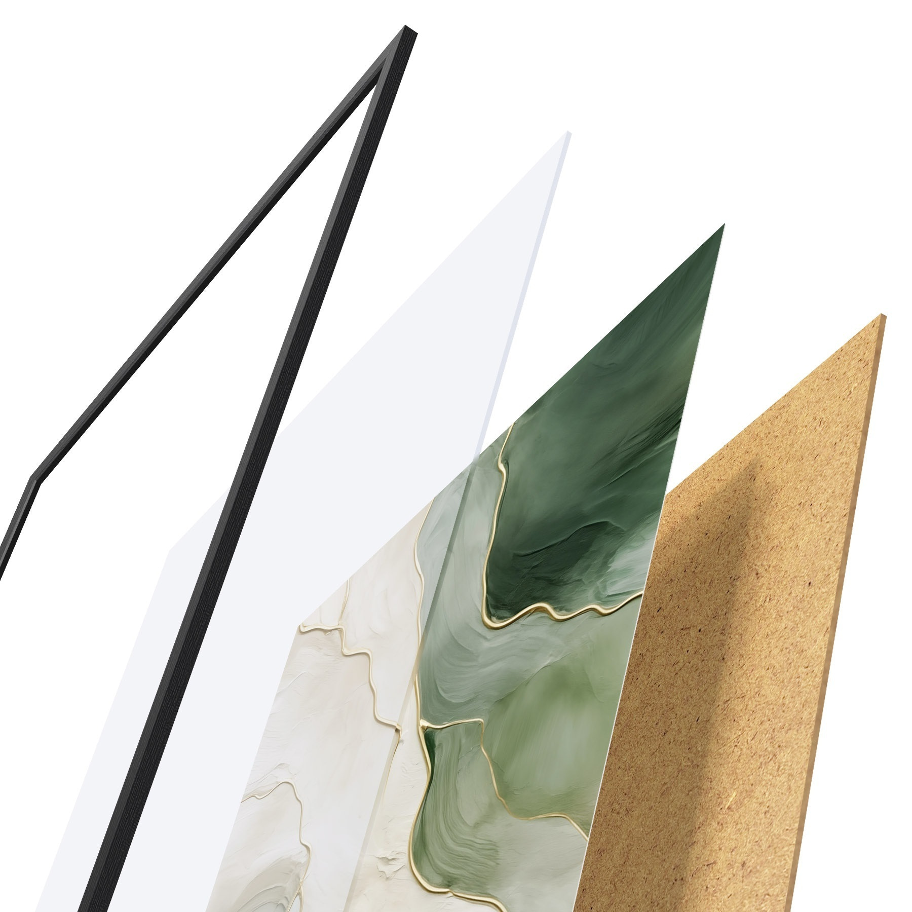 Plakatą sudaro rėmas, pleksiklas, atspausdintas vaizdas ir medžio drožlių plokštės pagrindas. Plakatą galima iš karto pakabinti ant sienos dėl kitoje pusėje esančių laikiklių.