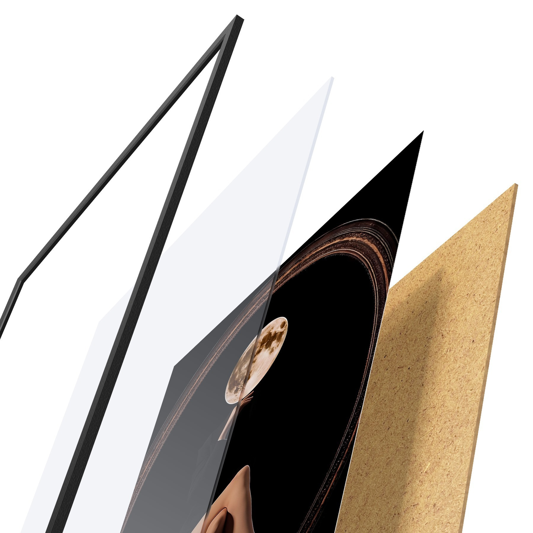 Plakatą sudaro rėmas, pleksiklas, atspausdintas vaizdas ir medžio drožlių plokštės pagrindas. Plakatą galima iš karto pakabinti ant sienos dėl kitoje pusėje esančių laikiklių.