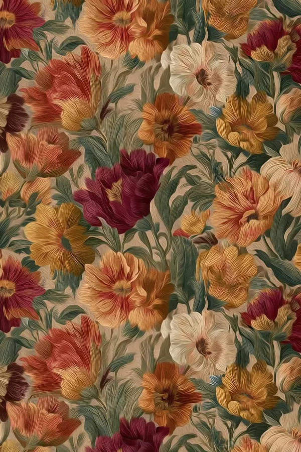 Plakatas Vintage gėlių raštas šiltų spalvų paletėje f45896