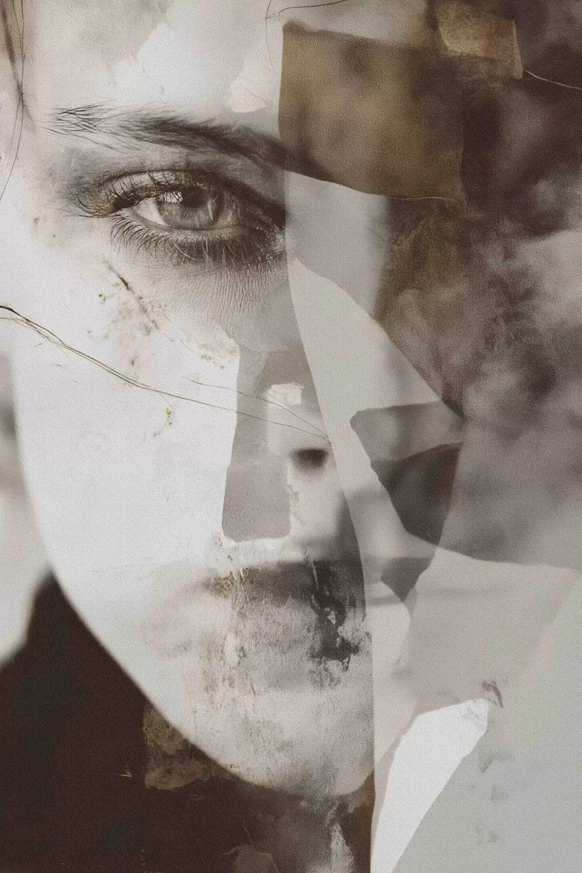 Plakatas Abstraktus portretas sepijos spalva, tekstūros ir dėmės Ne f45897