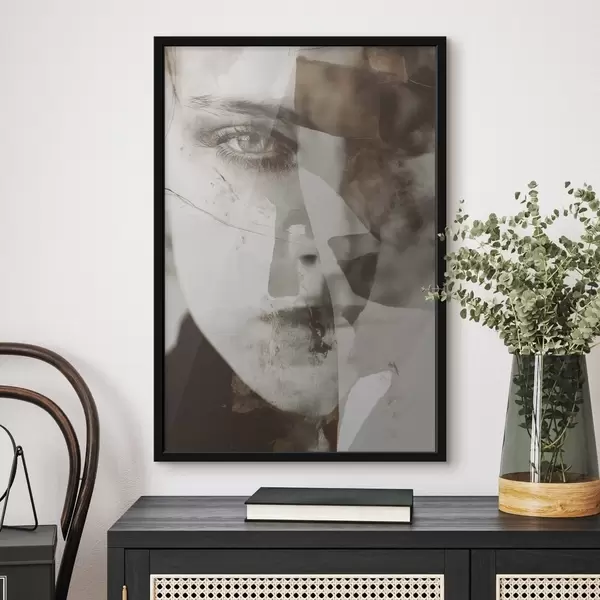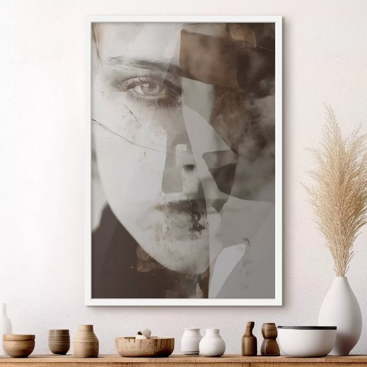 Plakatas Abstraktus portretas sepijos spalva, tekstūros ir dėmės f45897