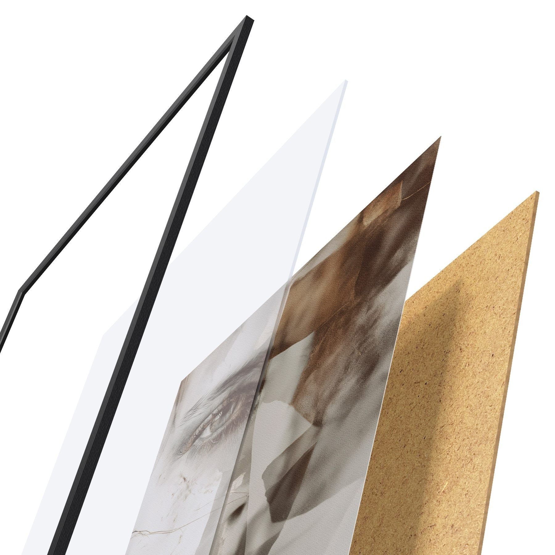 Plakatą sudaro rėmas, pleksiklas, atspausdintas vaizdas ir medžio drožlių plokštės pagrindas. Plakatą galima iš karto pakabinti ant sienos dėl kitoje pusėje esančių laikiklių.