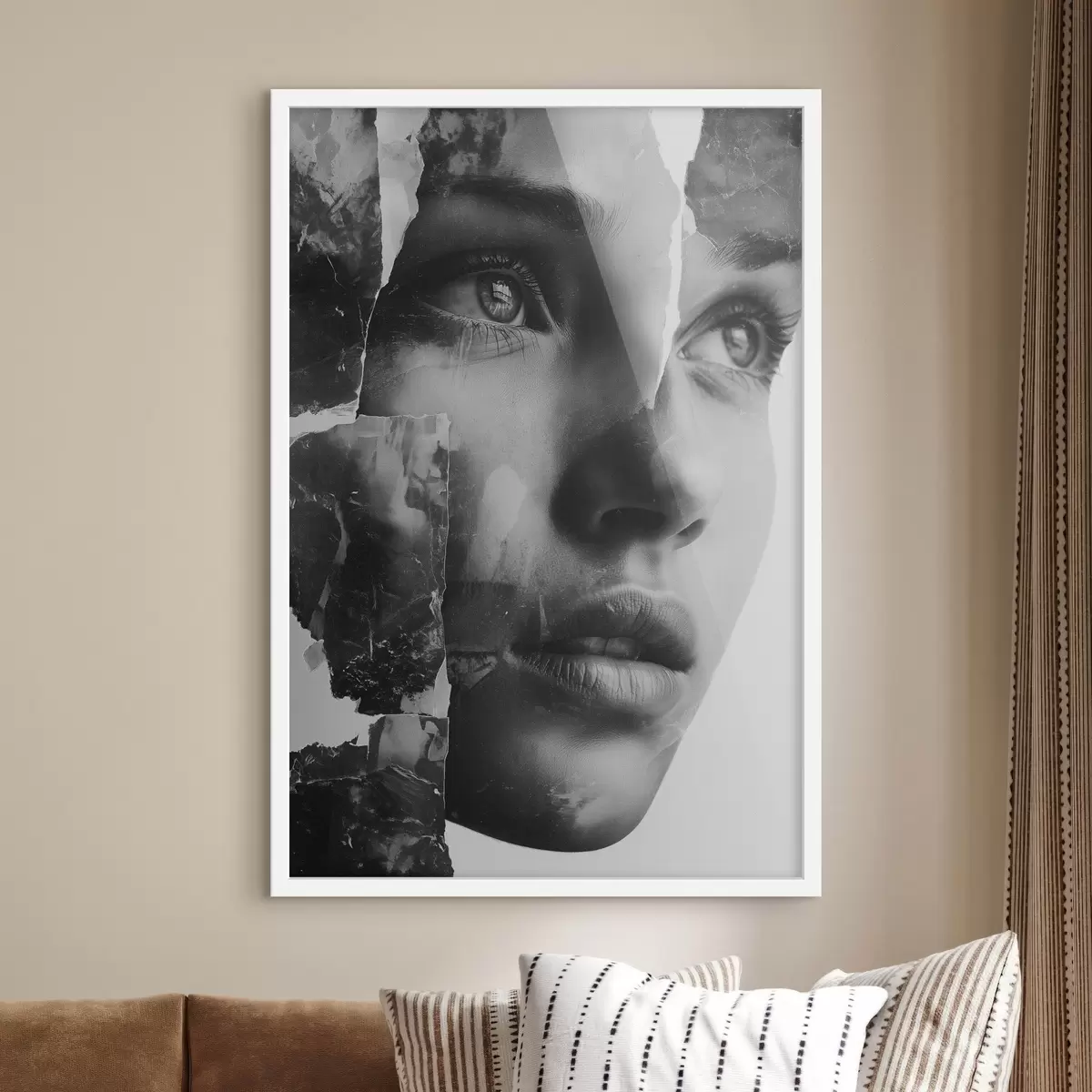 Plakatas Juodai baltas koliažinis portretas su suplėšytais tekstūriniais sluoksniais f45898