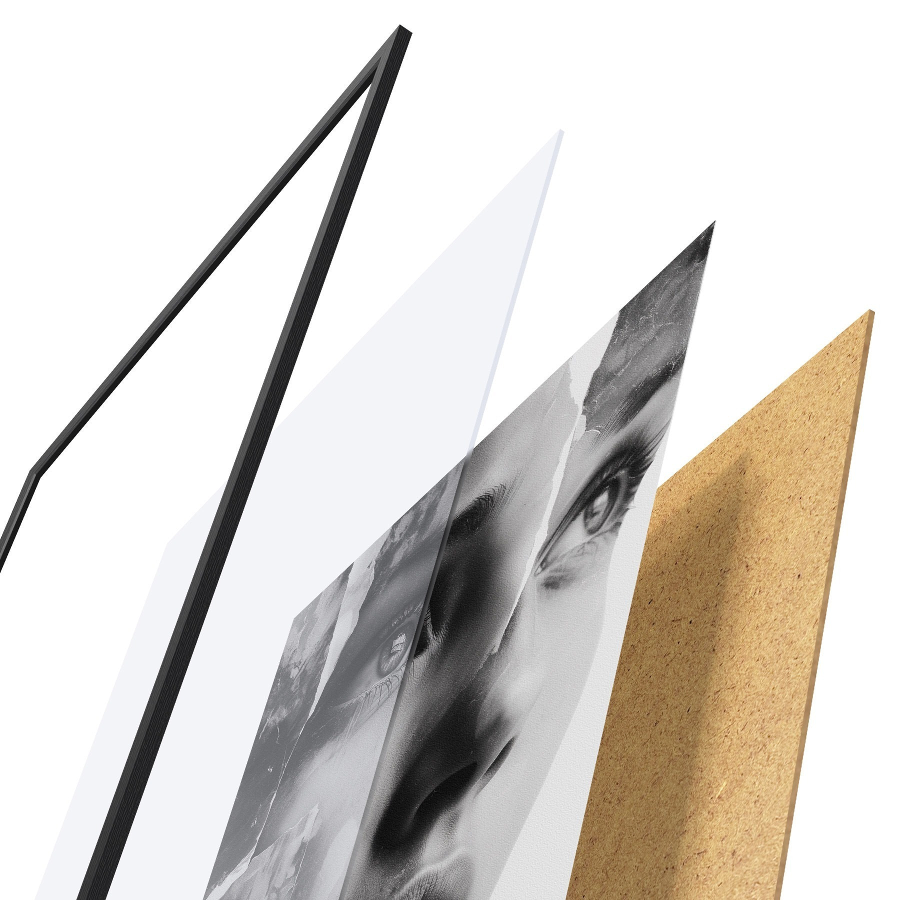 Plakatą sudaro rėmas, pleksiklas, atspausdintas vaizdas ir medžio drožlių plokštės pagrindas. Plakatą galima iš karto pakabinti ant sienos dėl kitoje pusėje esančių laikiklių.