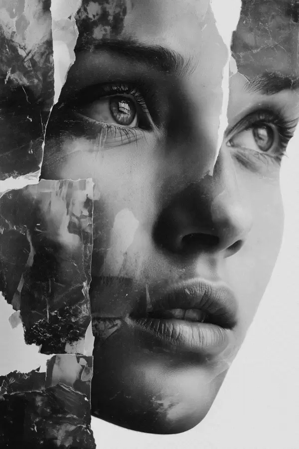 Plakatas Juodai baltas koliažinis portretas su suplėšytais tekstūriniais sluoksniais f45898