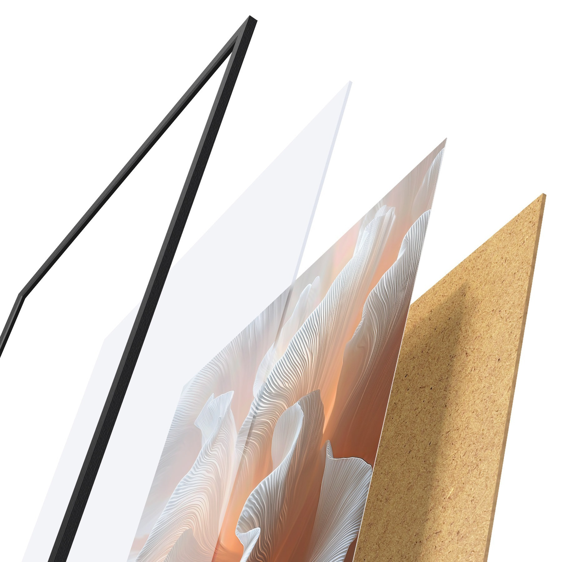 Plakatą sudaro rėmas, pleksiklas, atspausdintas vaizdas ir medžio drožlių plokštės pagrindas. Plakatą galima iš karto pakabinti ant sienos dėl kitoje pusėje esančių laikiklių.