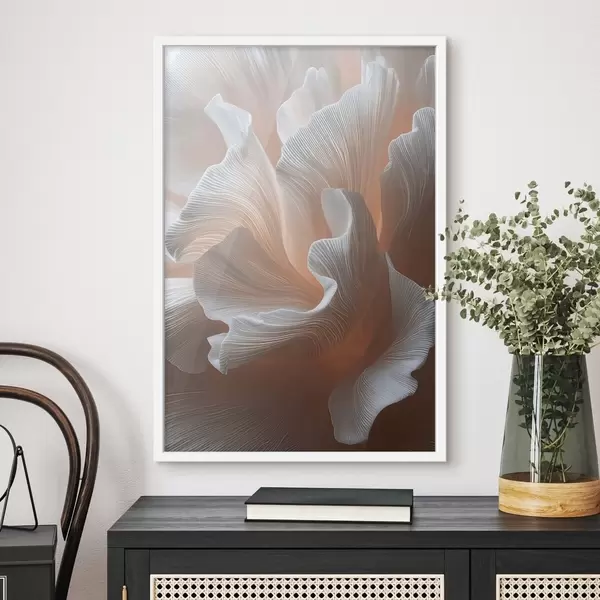 Plakatas Oro balti žiedlapiai su šiltu persikų spindesiu f45909
