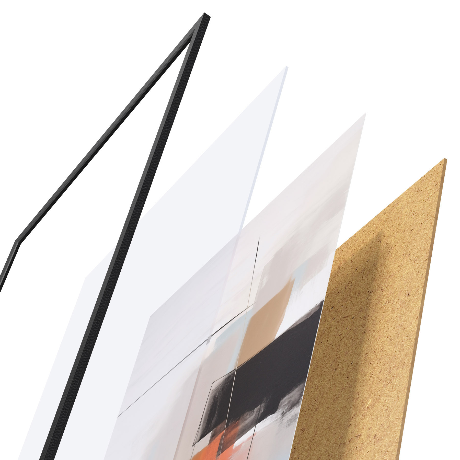 Plakatą sudaro rėmas, pleksiklas, atspausdintas vaizdas ir medžio drožlių plokštės pagrindas. Plakatą galima iš karto pakabinti ant sienos dėl kitoje pusėje esančių laikiklių.