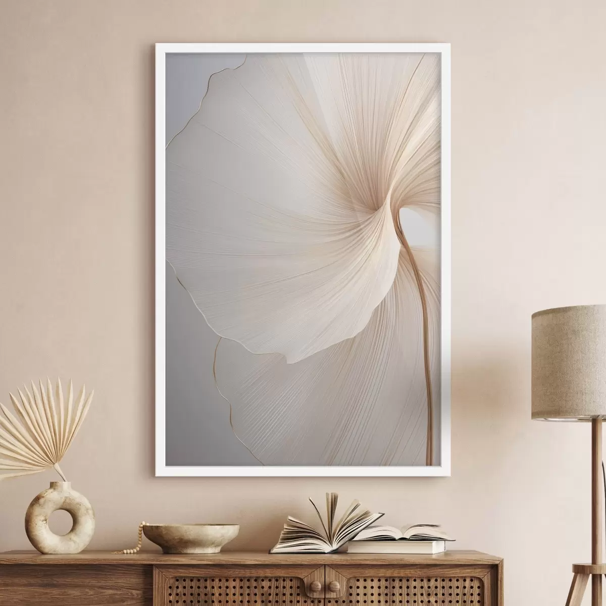 Plakatas Abstrakčios gėlės su plonais, subtiliais žiedlapiais, balto ir smėlio atspalvių f45922