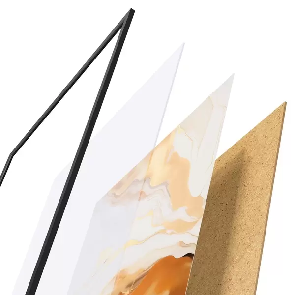 Plakatą sudaro rėmas, pleksiklas, atspausdintas vaizdas ir medžio drožlių plokštės pagrindas. Plakatą galima iš karto pakabinti ant sienos dėl kitoje pusėje esančių laikiklių.