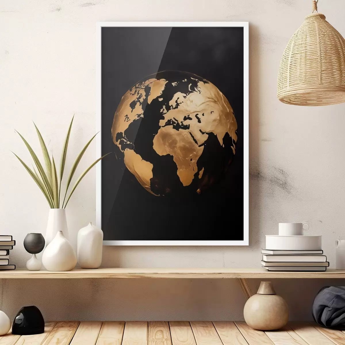 Plakatas Geltonos tekstūros abstraktus žemės gaublys, planeta juodame fone, modernus minimalistinis menas f45942