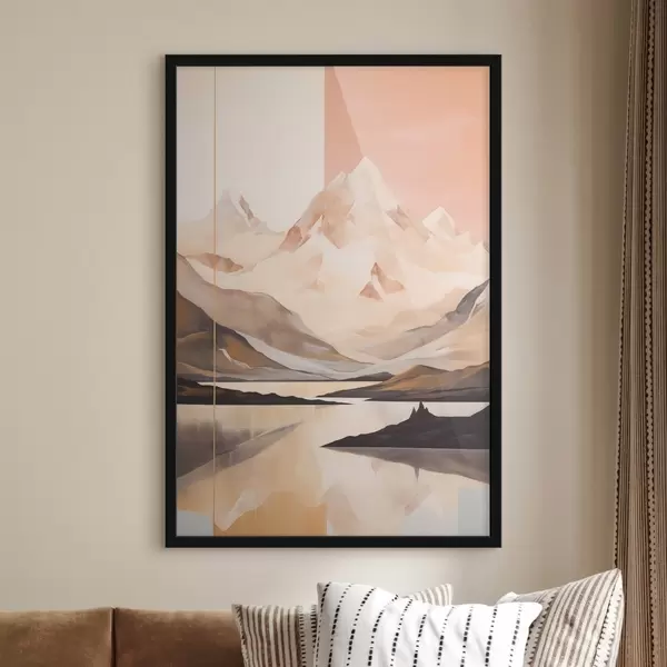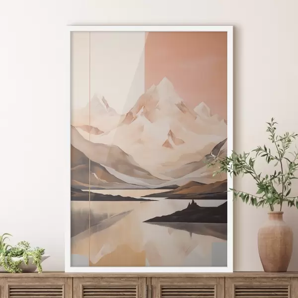 Plakatas Abstraktus peizažas su kalnais ir ežeru, pastelinės spalvos, minimalistinis stilius f45949