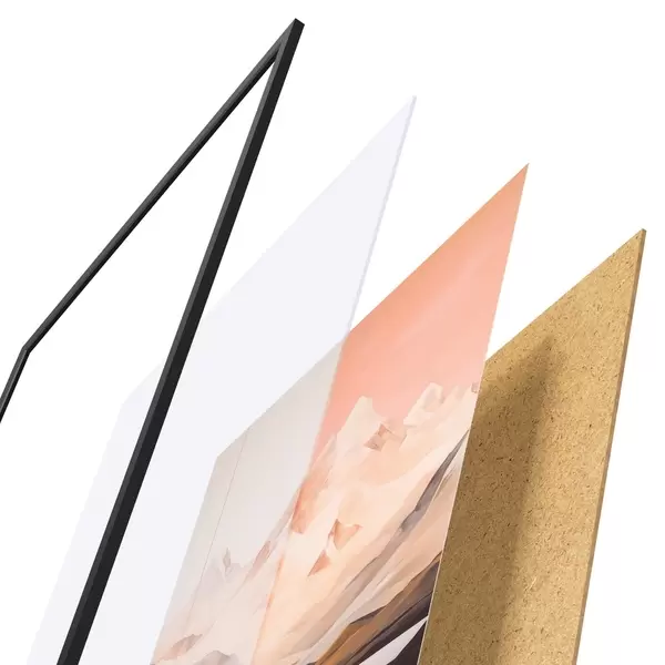 Plakatą sudaro rėmas, pleksiklas, atspausdintas vaizdas ir medžio drožlių plokštės pagrindas. Plakatą galima iš karto pakabinti ant sienos dėl kitoje pusėje esančių laikiklių.