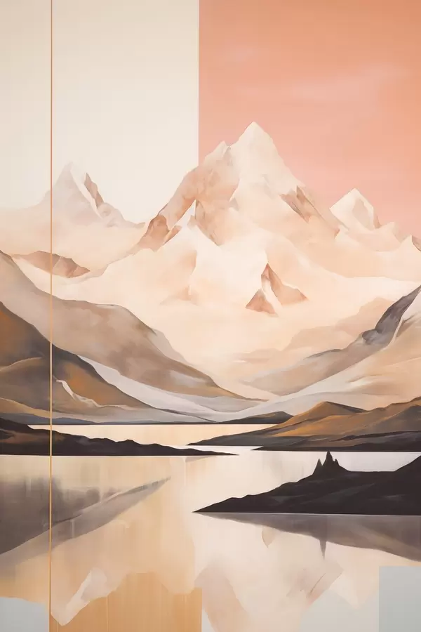 Plakatas Abstraktus peizažas su kalnais ir ežeru, pastelinės spalvos, minimalistinis stilius f45949