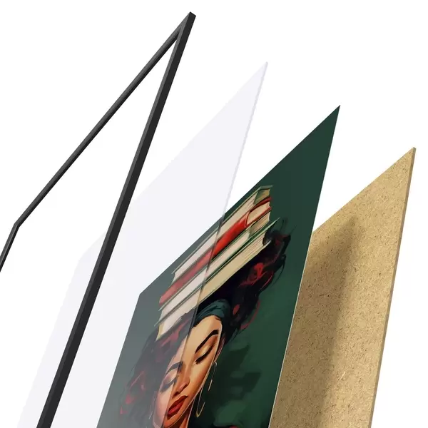 Plakatą sudaro rėmas, pleksiklas, atspausdintas vaizdas ir medžio drožlių plokštės pagrindas. Plakatą galima iš karto pakabinti ant sienos dėl kitoje pusėje esančių laikiklių.