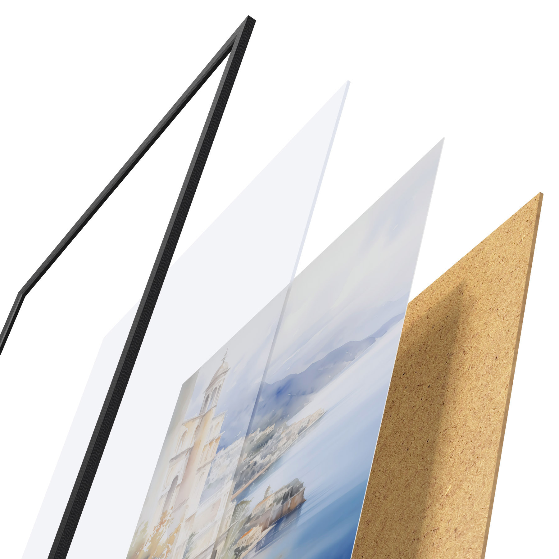 Plakatą sudaro rėmas, pleksiklas, atspausdintas vaizdas ir medžio drožlių plokštės pagrindas. Plakatą galima iš karto pakabinti ant sienos dėl kitoje pusėje esančių laikiklių.