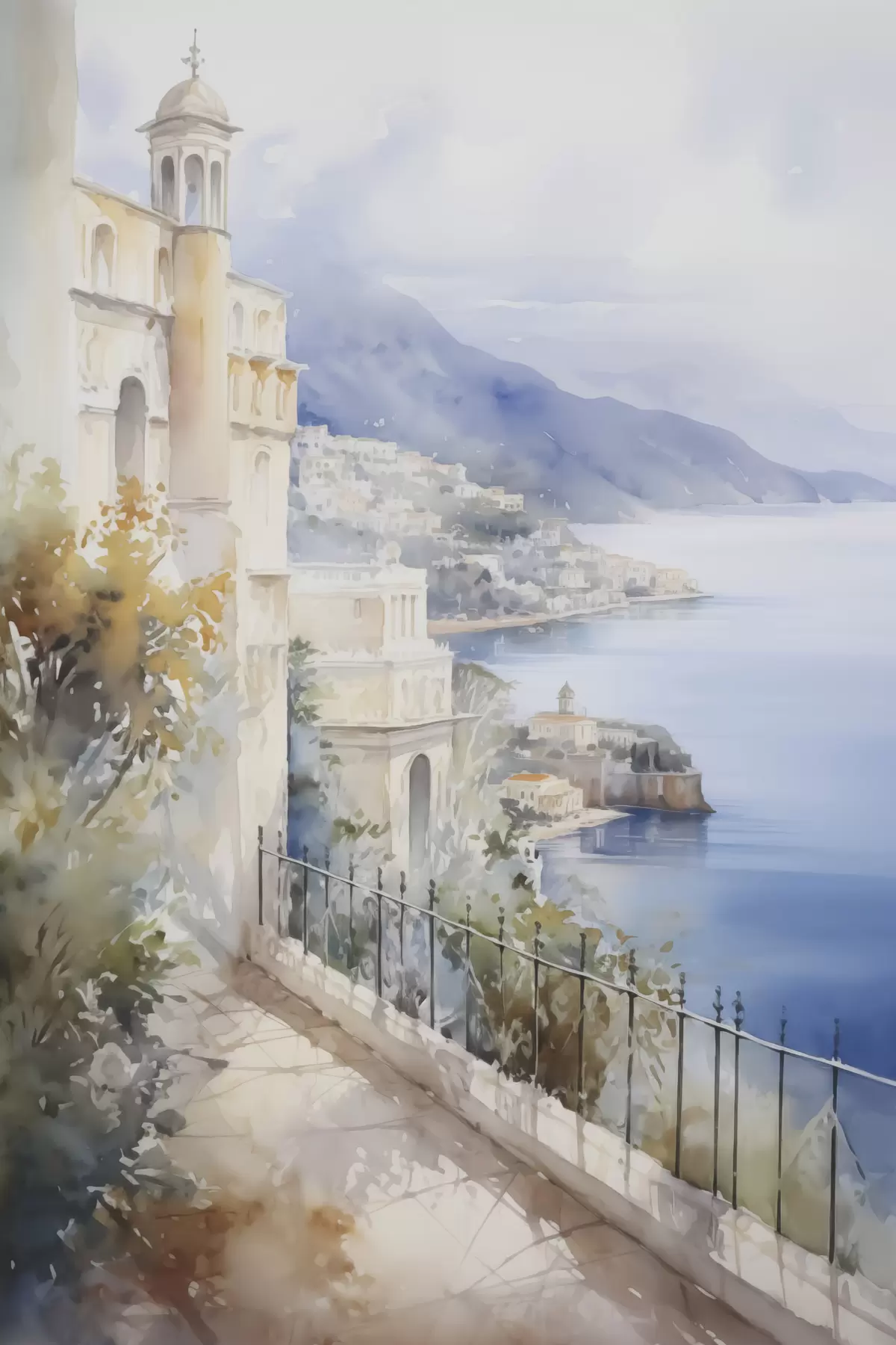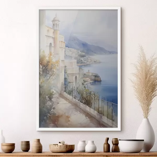 Plakatas Įlanka netoli miesto, akvarelės imitacija f45979